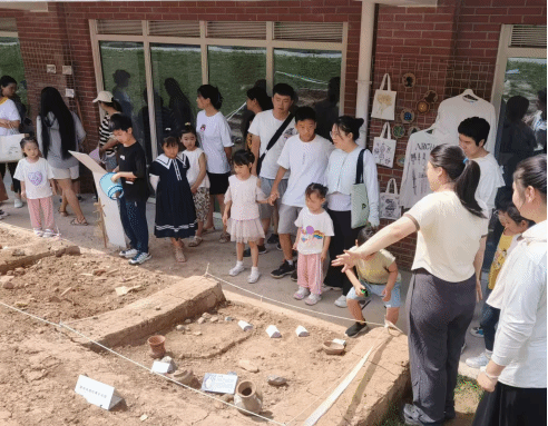 “到了二年级,我们开始上专业方向课程,在《公共教育项目策划与管理Ⅱ》中,我第一次参与项目式学习,我们团队以“探索远古奥秘”为主题,融合历史、科学、艺术等多学科知识,设计了一系列模拟原始人生活场景的沉浸式体验活动。我主导其中的陶器类活动板块,从内容设计、材料准备到现场引导,全流程锻炼了我的项目组织与教育服务设计能力。通过将史前文化转化为可感知、可动手的实践体验,我进一步理解了如何以学习者为中心进行教育项目开发,也让公共教育服务从理念走向具象实践,提升了项目组织与教育服务设计能力。我们老师也特别能整活儿,后来还把我们这个项目输出到社区幼儿园,让我们接触小朋友,有了最真实的项目体验。”