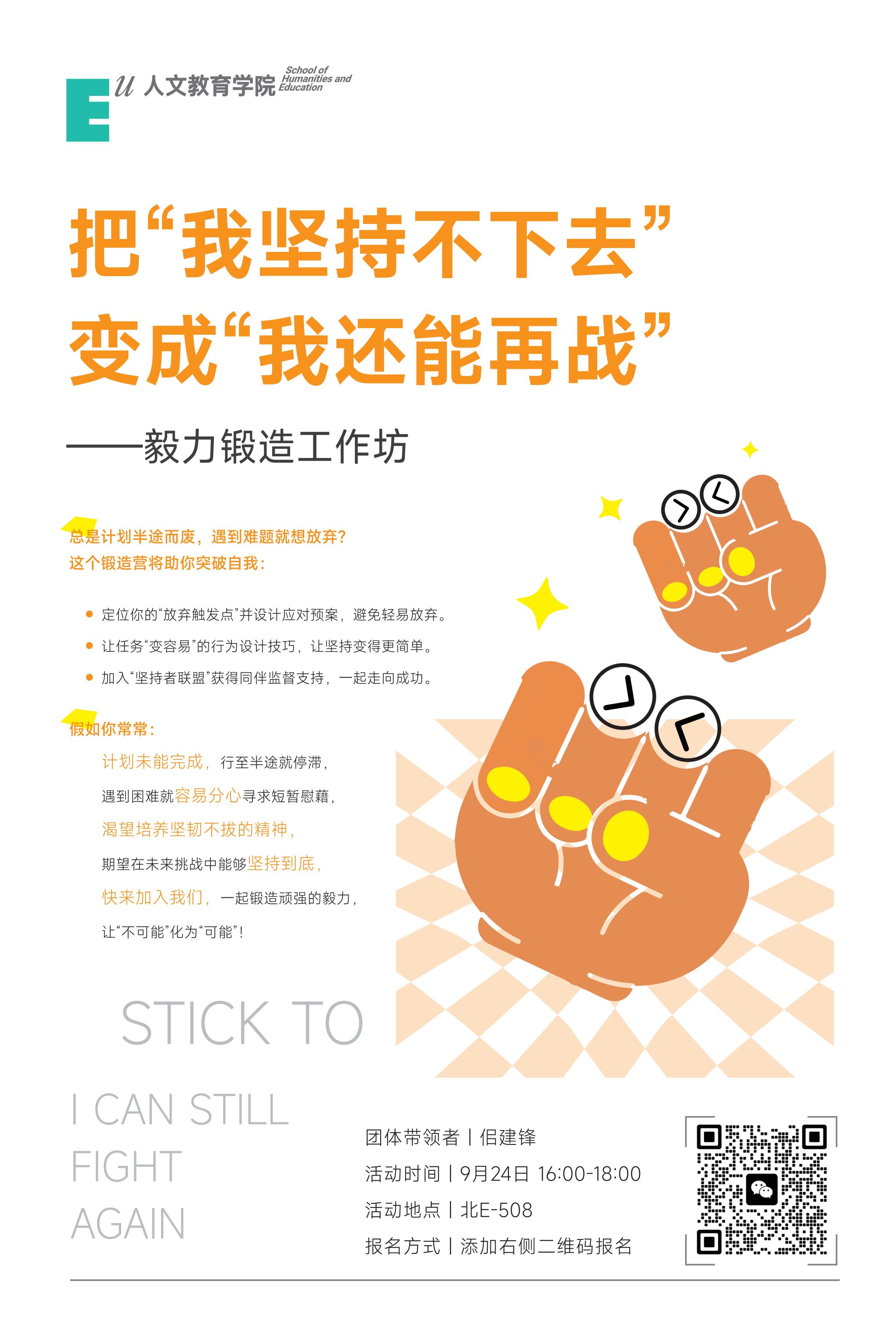 与此同时,北E-508教室的“毅力锻造工作坊”里,佀建锋老师正帮助学生突破“坚持难”的困境。工作坊中,老师引导学生定位“放弃触发点”并设计应对预案,还分享了让任务“变容易”的行为设计技巧。此外,“坚持者联盟”的组建,让学生们获得同伴监督与支持,为长期坚持注入动力。人居环境学院的一名学生表示:“以前遇到难题就想放弃,现在学会了应对方法,还有小伙伴一起监督,相信以后能更坚定地完成目标。”