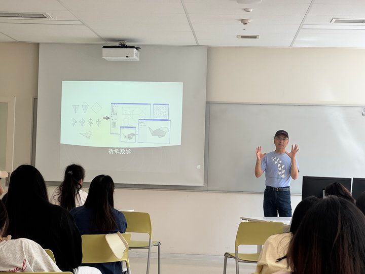 2024年4月23日午后,人文教育学院迎来了一场特别的讲座:《折纸数学神童——科学与艺术的创意教学》。主讲嘉宾樊必健教授,西安交通大学数学硕士、美国德州农工大学机械工程博士、加州州立大学峡岛分校教授,科学与艺术创意教学专家,用生动有趣的方式,带领大家走进了折纸数学的神奇世界。