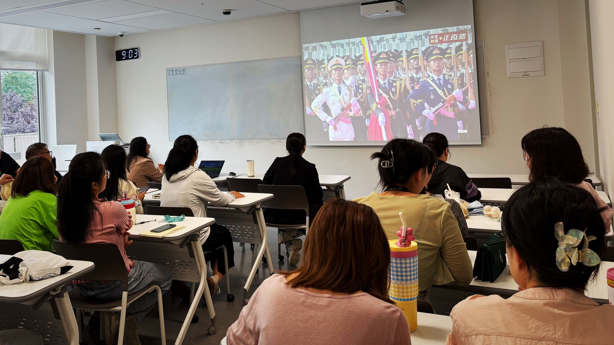 2025年9月3日,纪念中国人民抗日战争暨世界反法西斯战争胜利80周年阅兵式在天安门广场盛大举行。人文教育学院组织500余名师生齐聚阶梯教室、多媒体教室等场地,集中收看阅兵直播,在回望14年浴血奋战的峥嵘岁月中感悟伟大抗战精神,将家国情怀与师德师风建设、师范认证筹备工作深度融合,以“做平凡世界的一道光”的信念,锚定立德树人根本目标,凝聚教育报国的磅礴力量。